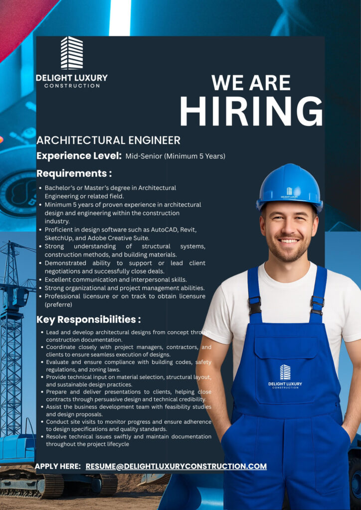 We are seeking a talented and experienced Architectural Engineer to join our dynamic team. The ideal candidate will have a minimum of 5 years of experience in architectural engineering, with a solid background in construction design and a strong aptitude for closing project deals. You will play a pivotal role in both the technical and client-facing aspects of our projects, ensuring that every design meets structural integrity standards while aligning with the client’s vision